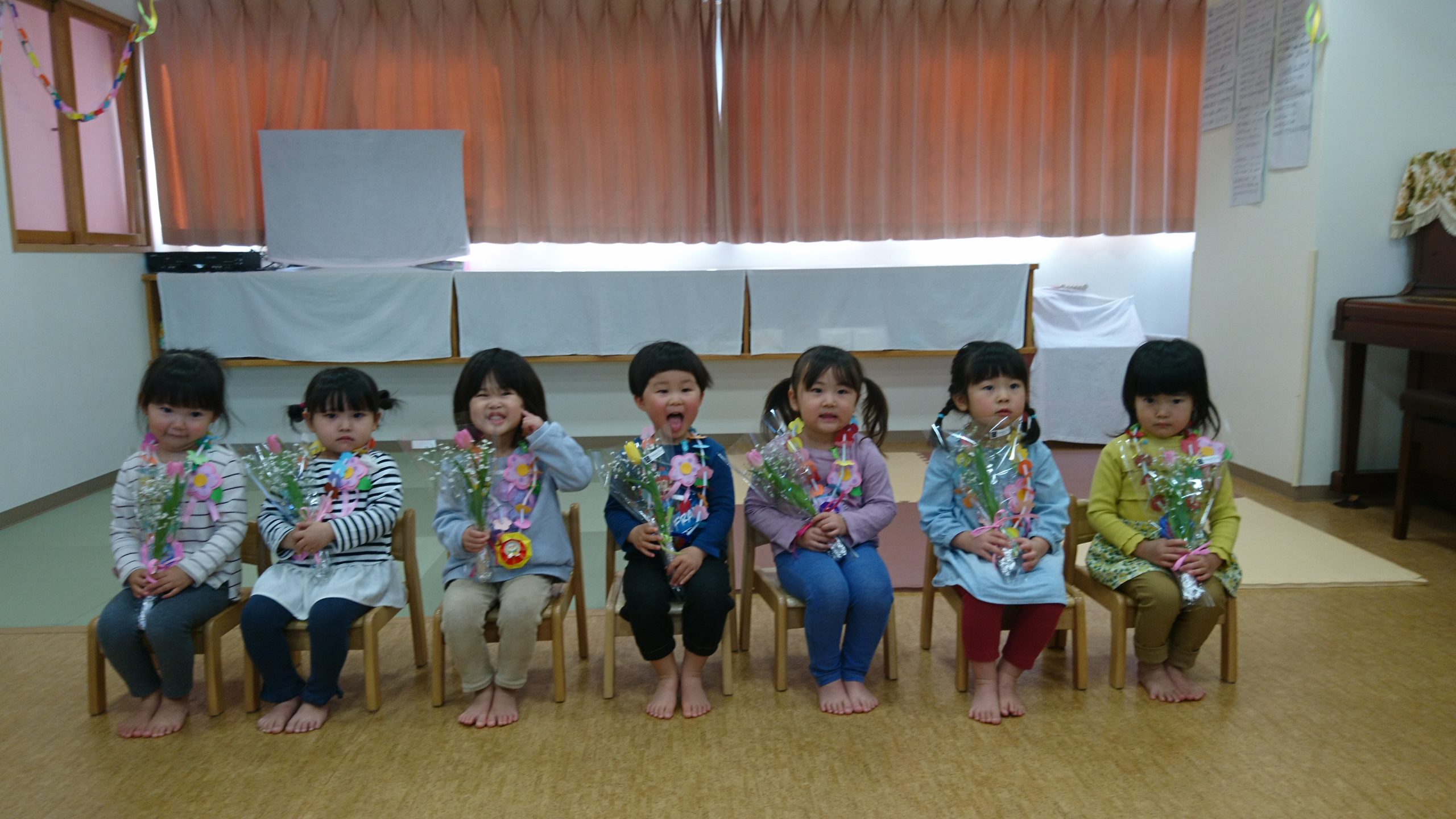 2歳児は朝から「卒園おめでとう」と声を掛けてもらったり