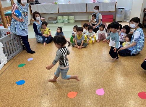 園の様子 Let’s English! 2022年5月17日 / はじめての英語あそびをしました。 はじめは先生の英語を聞いて、 ぽかーんとしていましたが、先生と一緒に歌ったり、踊ったりしていくうちに、 身体を動かして楽しめるようになってきました。 音楽に合わせて「stand up」「sit down 」「clap your hands」「walk 」をしたり、 それぞれの色の風船を英語で聞いてたりしました! 最後はみんなニコニコで楽しむことが出来ました! また、来月も楽しみです!